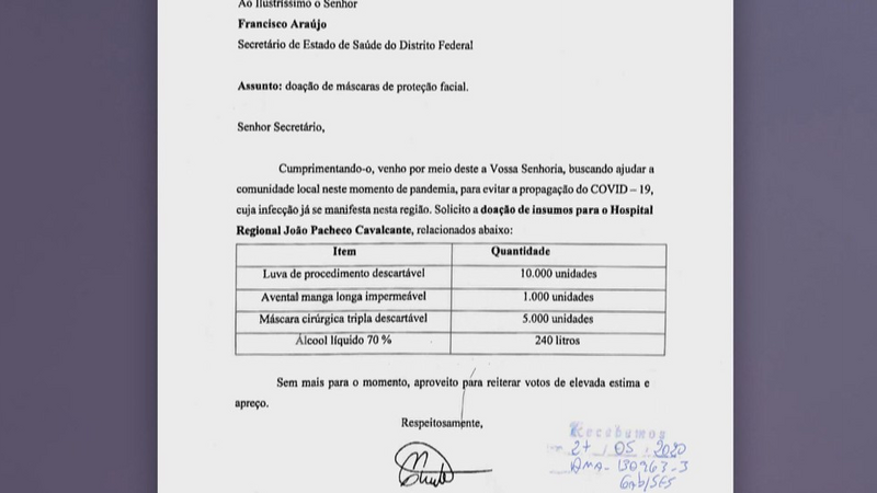 A Secretaria de Saúde do Distrito Federal autorizou a doação de 22,5 mil equipamentos de proteção individual (EPIs) ao município de Corrente (PI). A cidade fica a cerca de 860 quilômetros de Brasília e é onde o governador Ibaneis Rocha (MDB) passou a infância. O pedido do material usado no combate ao novo coronavírus foi feito pelo prefeito Murilo Mascarenhas, de Corrente. Além de luvas e máscaras, foi autorizada a entrega de 240 litros de álcool líquido 70%.