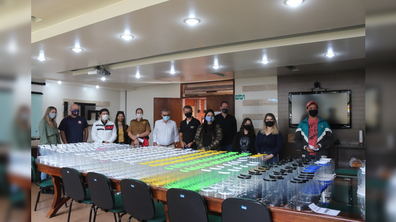 366 máscaras de proteção facial foram entregues através da parceria entre a Universidade Tecnológica Federal do Paraná (UTFPR), Instituto Regional de Desenvolvimento Econômico e Social (Irdes), Prefeitura de Pato Branco, Fiep, Atlas, Inplasul, Adizell e alunas voluntárias da UTFPR e Faculdade Mater Dei.