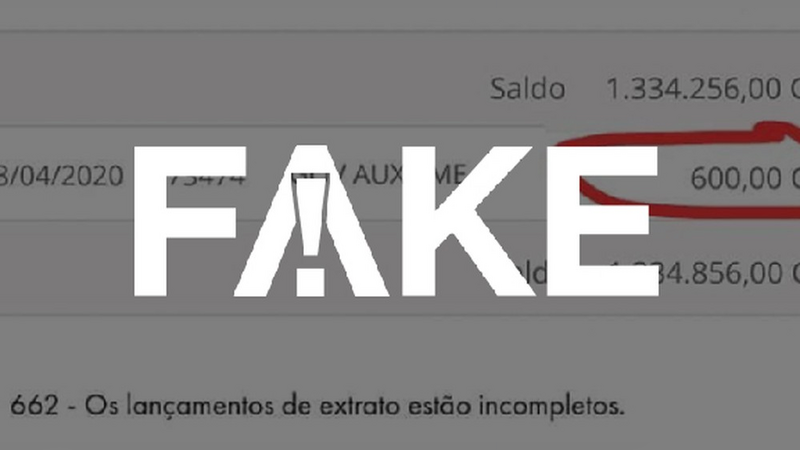 (3) É #FAKE imagem de extrato bancário com depósito de auxílio emergencial em conta com saldo milionário