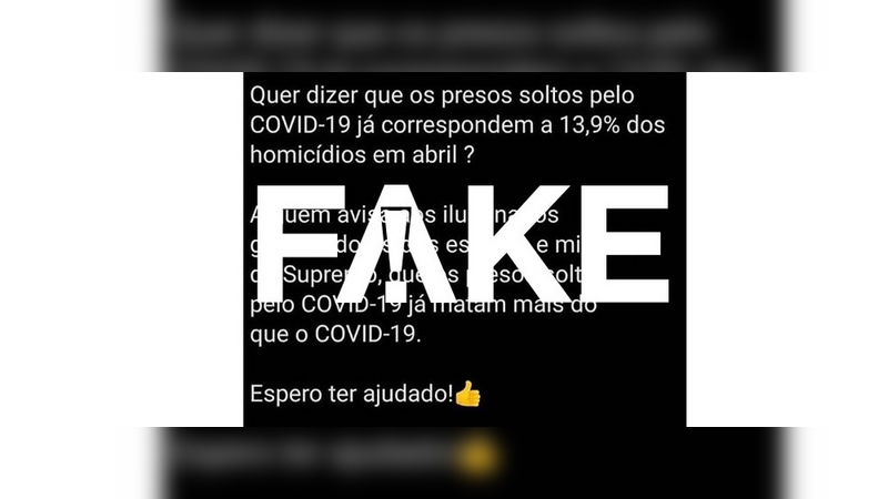 (1) É #FAKE que presos liberados da cadeia por conta da pandemia de Covid-19 cometeram 13,9% dos homicídios do país no mês de abril