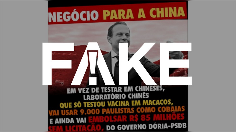 Não é verdade que a vacina contra o coronavírus do laboratório chinês Sinovac Biotech, que será testada em 9 mil voluntários brasileiros, nunca foi ministrada em humanos, só tendo passado por testes clínicos e com macacos. Os testes com humanos, que sucederam os com macacos rhesus, começaram na China no dia 16 de abril, com 743 adultos saudáveis, com idades entre 18 e 59 anos. Segundo o fabricante, não foram observados efeitos colaterais significativos da vacina, que começou a ser produzida em janeiro. Também não é verdade que só paulistas participarão dos testes brasileiros.
