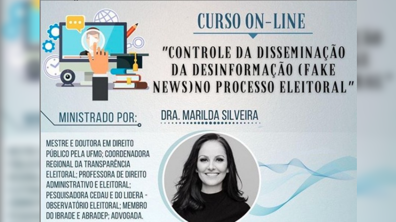 A ação será ministrada pela mestra e doutora em direito público pela UFMG; coordenadora regional da transparência eleitoral; professora de direito administrativo e eleitoral; pesquisadora Cedau e do Lidera-observatório eleitoral; membro do Ibrade e Abradep, e advogada Dra. Marilda Silveira.