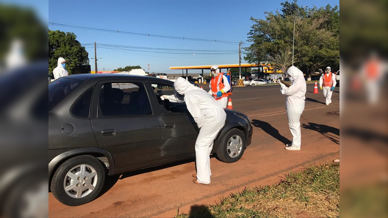 Campo Grande está com barreiras sanitárias como forma de prevenção ao novo coronavírus. Quem chega à capital sul-mato-grossense é abordado por profissionais da saúde devidamente equipados, tem a temperatura aferida e o veículo desinfectado.
